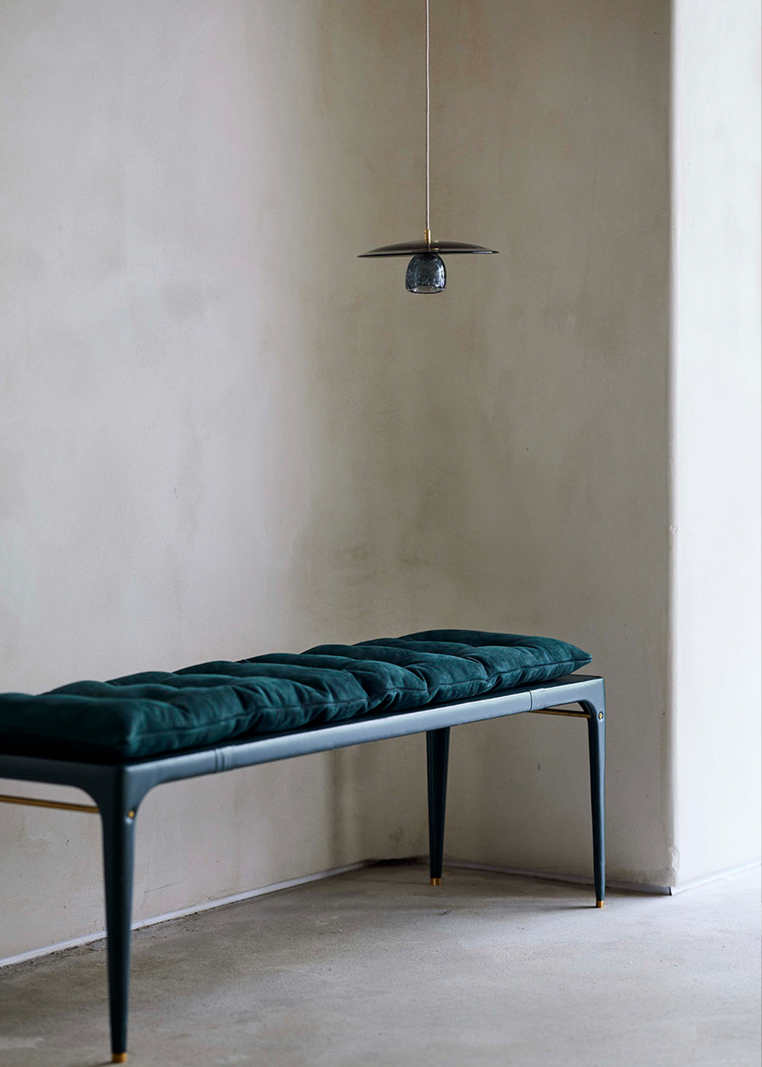 Hand blown coloured glass with matching top shade, illuminated by a LED