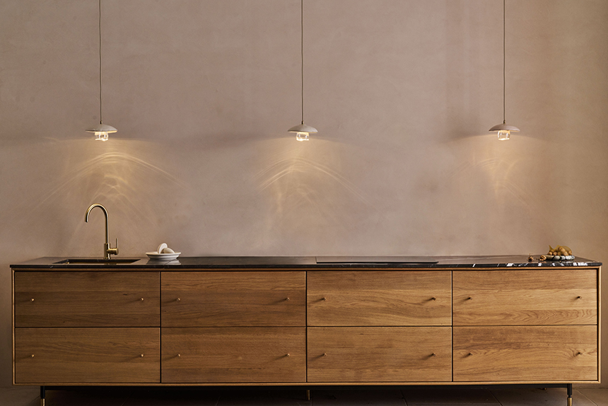 clochette brass and oak pendant